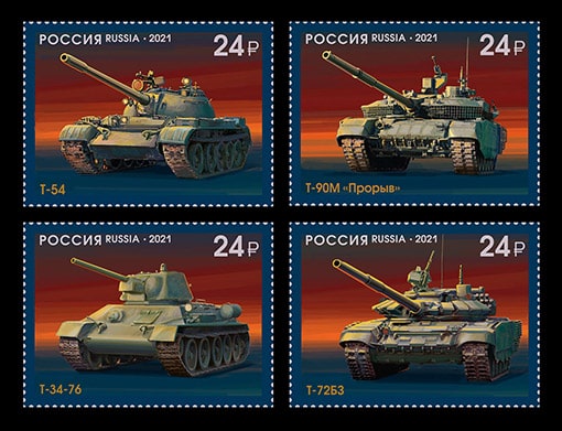 Россия 2021 год. Серия "История отечественного танкостроения", 4 марки