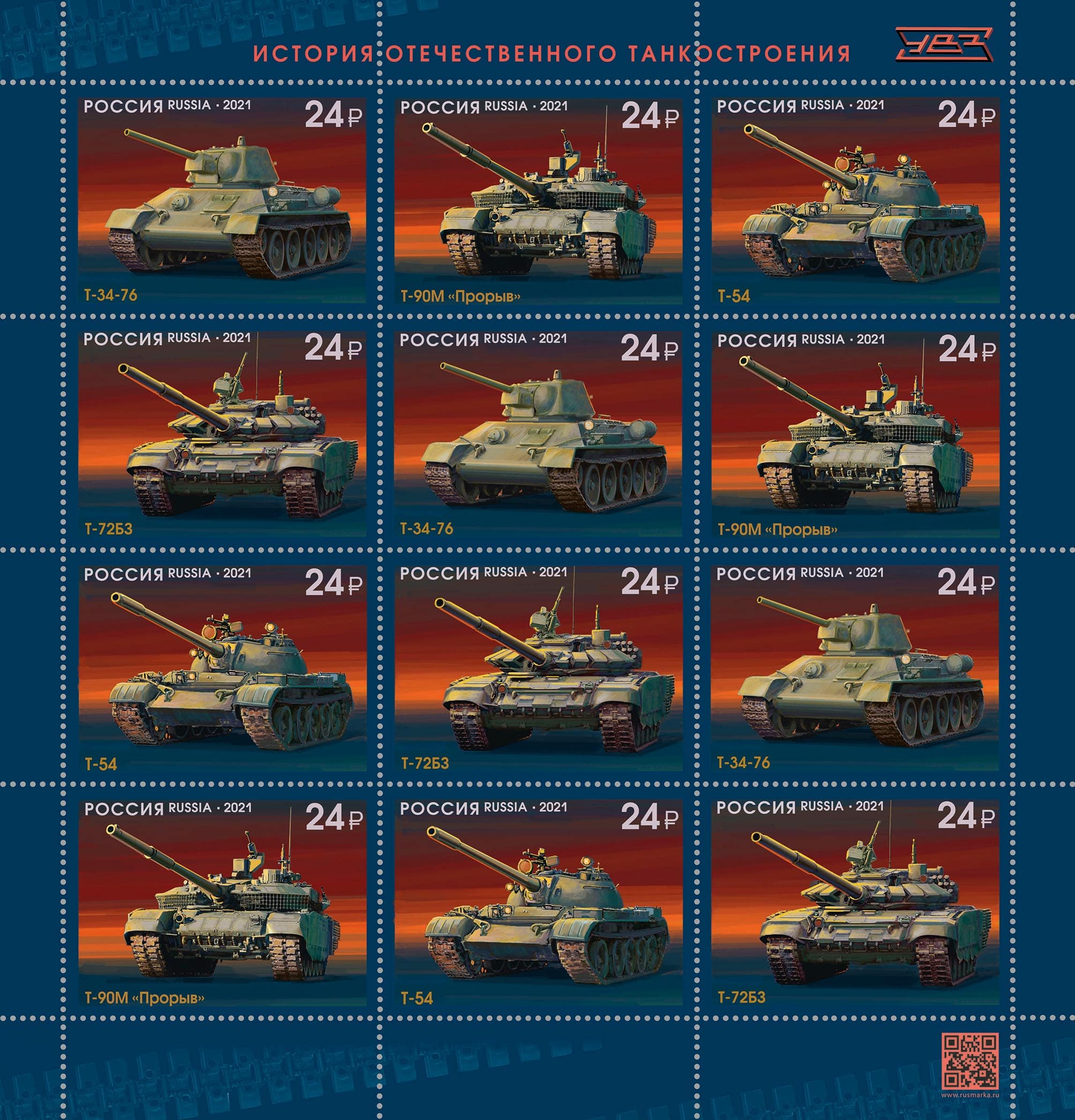 Россия 2021 год. Серия "История отечественного танкостроения", малый лист