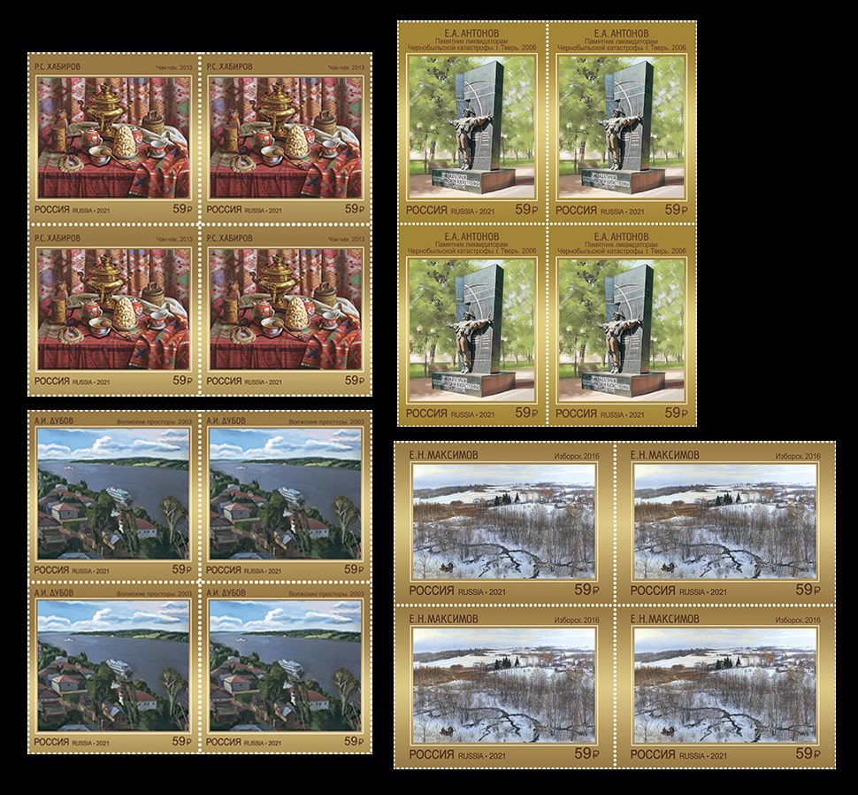 Россия 2021 год. Серия "Современное искусство России", 4 квартблока