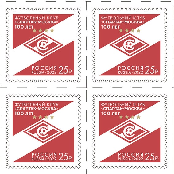Россия 2022 год. 100 лет футбольному клубу «Спартак - Москва», квартблок