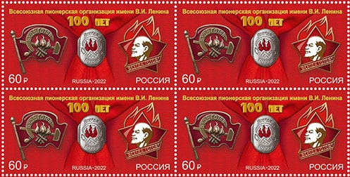 Россия 2022 год. 100 лет основанию Всероссийской пионерской организации имени В.И. Ленина, квартблок