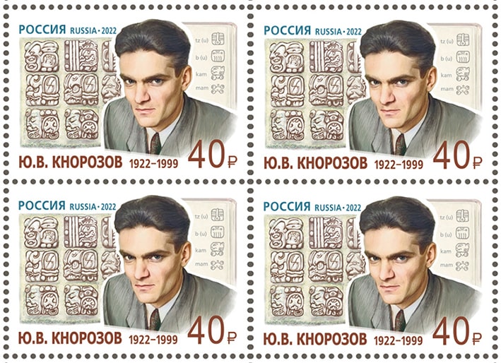 Россия 2022 год. 100 лет со дня рождения Ю.В. Кнорозова (1922–1999), учёного, историка, этнографа, основателя советской школы майянистики, квартблок