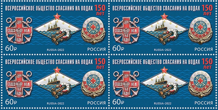 Россия 2022 год. 150 лет Всероссийскому обществу спасания на водах, квартблок