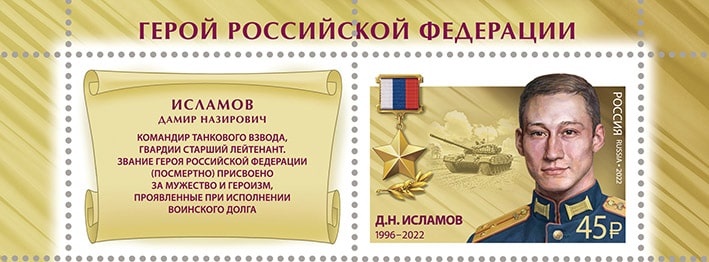 Россия 2022 год. Герой Российской Федерации Д.Н. Исламов (1996–2022), 1 марка с купоном