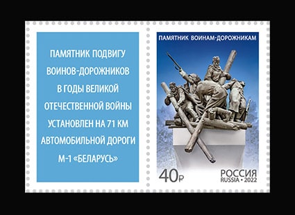 На почтовой марке изображён памятник воинам-дорожникам, установленный на 71-м километре автомобильной дороги М-1 «Беларусь».