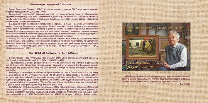 Россия 2022 год. Сувенирный набор в художественной обложке "100 лет со дня рождения Б.С. Угарова (1922-1991), художника, президента Академии художеств СССР" (2-ая форма выпуска)