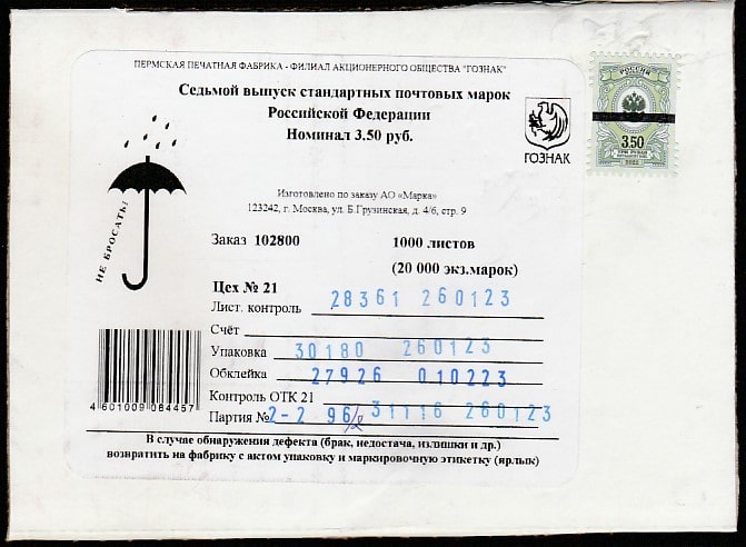 Россия 2022 год. VII выпуск стандартных почтовых марок РФ. "Орлы", ном. 3,5 руб, 1 марка (анулянт)