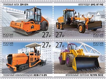 Россия 2023 го. Серия «Отечественная дорожно-строительная техника», 4 марки