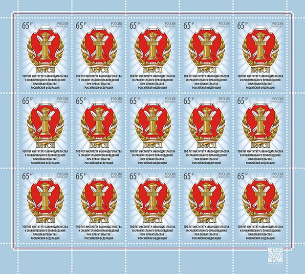 Россия 2023 год. 100 лет институту законодательства и сравнительного правоведения при Правительстве РФ, лист