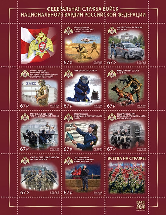 На почтовых марках изображены войсковые подразделения Федеральной службы войск национальной гвардии Российской Федерации: