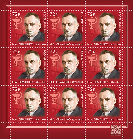 Россия 2024 год. Россия 2024 год. 150 лет со дня рождения Н.А. Семашко (1874–1949), врача, государственного деятеля, лист, ном. 72 руб.