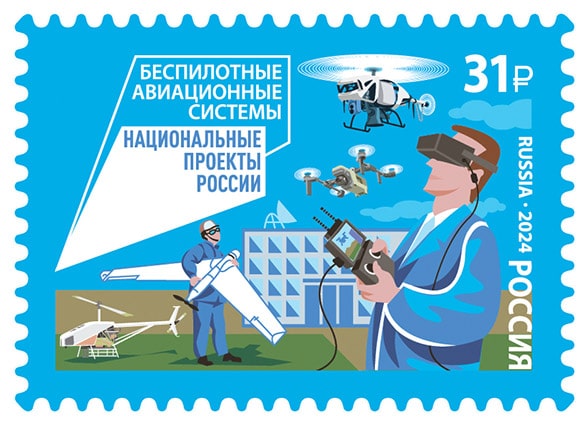Россия 2024 год. Серия «Национальные проекты России». Беспилотные авиационные системы, 1 марка, ном. 31 руб.