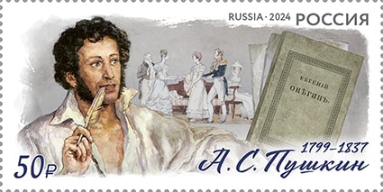 Россия 2024 год. Совместный выпуск Российской Федерации и Республики Беларусь. 225 лет со дня рождения А.С. Пушкина (1799–1837), поэта (50 руб), 1 марка