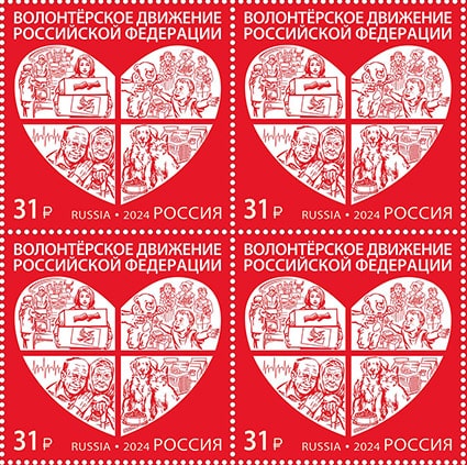 Россия 2024 год. Волонтёрское движение Российской Федерации, квартблок (ном. 31 р.)