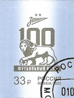 Россия 2025 год. 100 лет футбольному клубу «Зенит», 1 гашеная марка