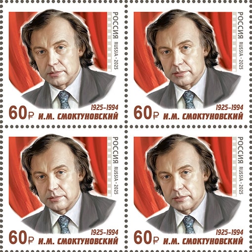 Россия 2025 год. 100 лет со дня рождения И.М. Смоктуновского (1925–1994), актёра, народного артиста СССР, (ном. 60 р.), квартблок