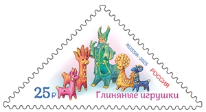 Россия 2025 год. Серия «Декоративно-прикладное искусство России». Глиняные игрушки. 1 марка (ном. 25 ₽)