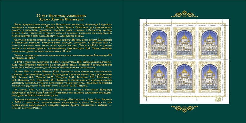 Россия 2025 год. Сувенирный набор в художественной обложке - 25 лет Великому освящению Храма Христа Спасителя (2-ая форма выпуска)
