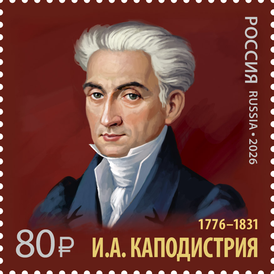 Россия 2026 год. Серия «История российской дипломатии». 250 лет со дня рождения И.А. Каподистрии (1776–1831), государственного деятеля,1 марка (ном.80 ₽)