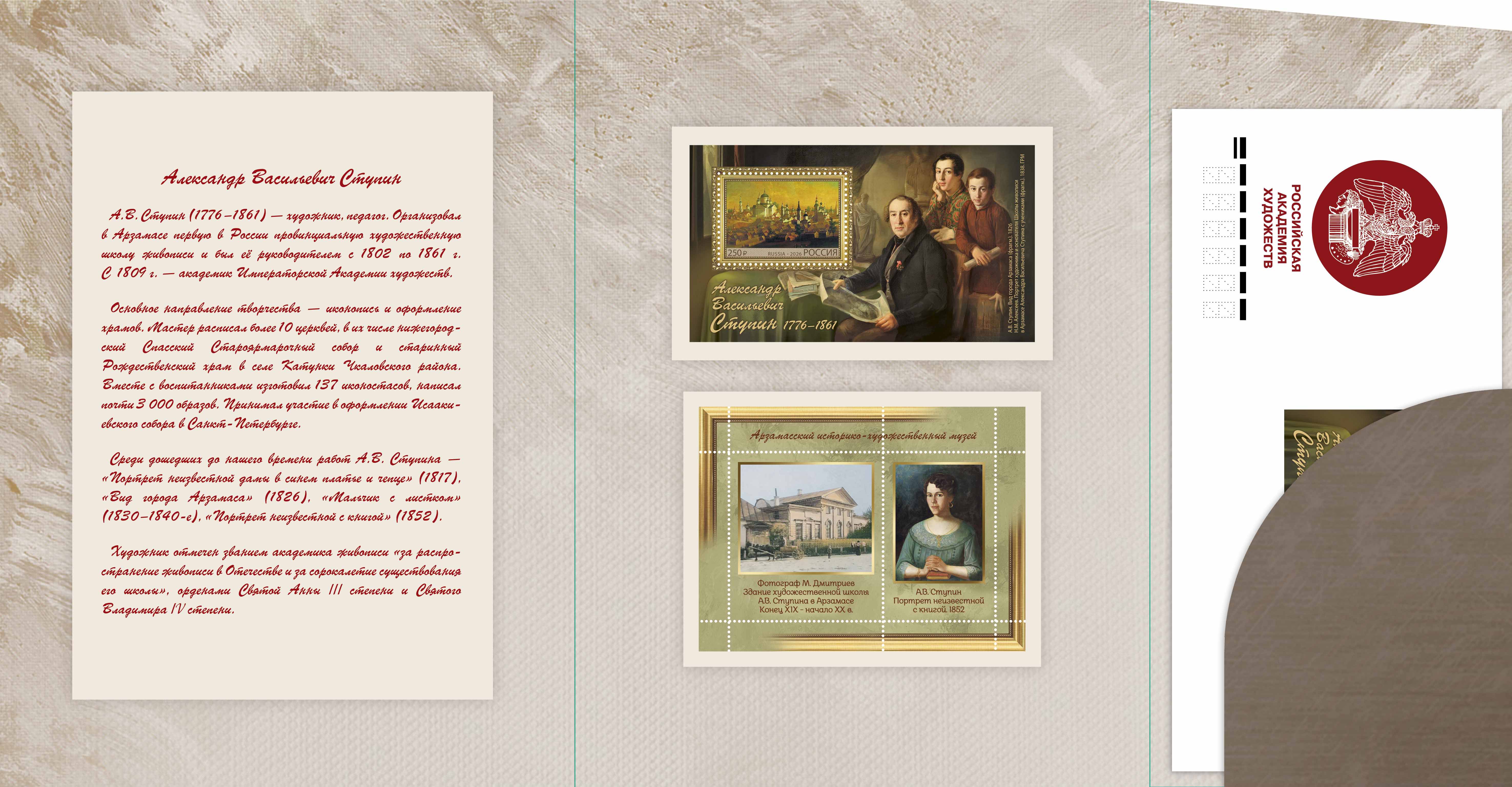 Россия 2026 год. Сувенирный набор в художественной обложке "250 лет со дня рождения А.В. Ступина", мелованная бумага, офсетная печать и глянцевая ламинация