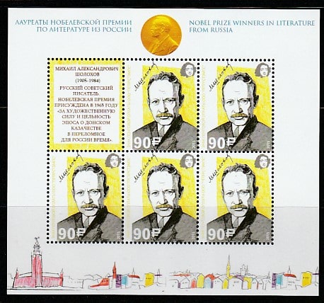 Россия "Петерспост" 2015 год. Лауреаты Нобелевской премии по литературе: М.А. Шолохов, малый лист (непочтовые марки)