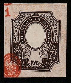 Российская Республика 1917 год. XXVI Стандартный выпуск (ном. 1 руб.) Разновидность - сдвиг печати, 1 марка (наклейка)