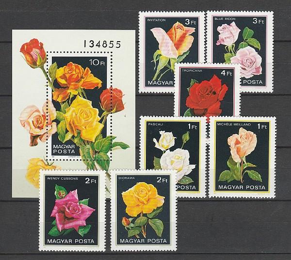 Розы, Венгрия 1982 г, 7 марок блок. НАКЛЕЙКА