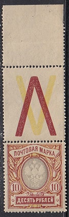 РСФСР, 1915-18 гг. 10 рублей. 1 марка с контрольным полем