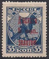 РСФСР 1922 год. Стандарт (ном. 35 копеек). НДП "доплата 5 копеек золотом". 1 марка с наклейкой