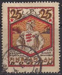 РСФСР 1923 год. Непочтовая марка комитета помощи инвалидам войны 25 рублей гашеная