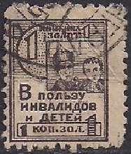 РСФСР 1923 год. Непочтовая марка "В пользу инвалидов и детей", 1 копейка, гашеная