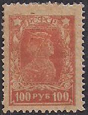 РСФСР 1923 год. Стандарт (100 рублей). 1 марка с наклейкой