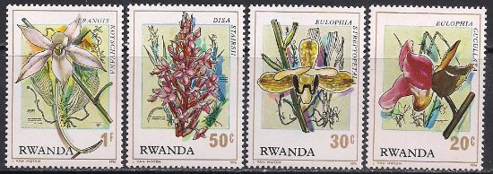 Руанда 1976 год. Орхидеи. 4 гашеные марки