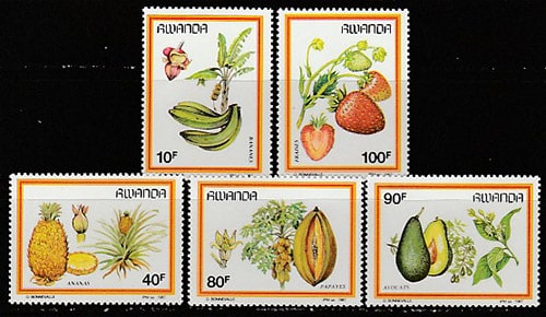 Руанда 1987 год. Фрукты, ягоды, 5 марок