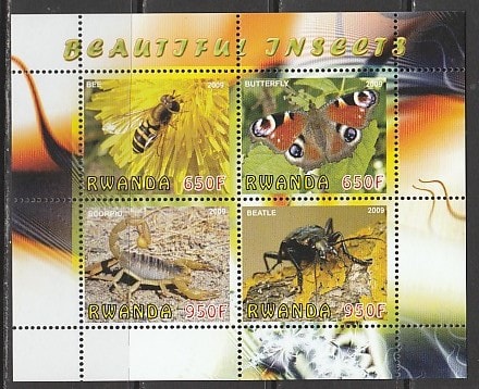 Руанда 2009 год. Насекомые, малый лист Сувенирный выпуск.