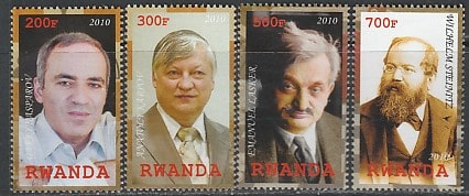 Руанда 2010 год. Известные шахматисты I, 4 марки