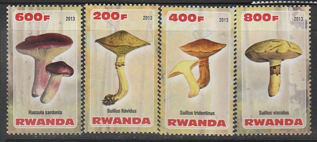 Руанда 2013 год. Грибы, 4 марки (I) Сувенирный выпуск.