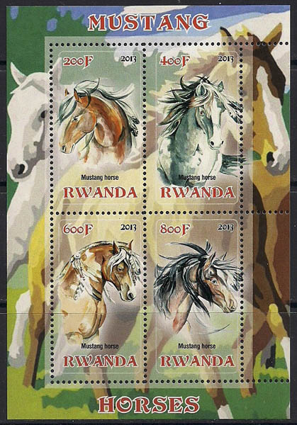 Руанда 2013 год. Мустанги. 1 малый лист. ДВ
