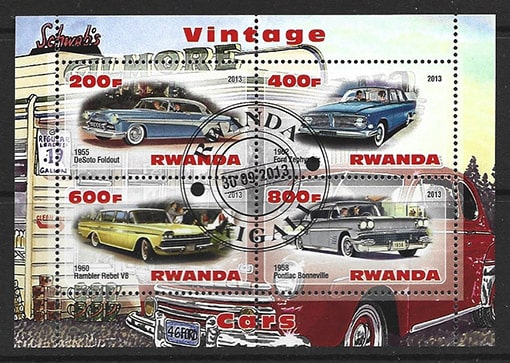 Руанда 2013 год. Ретро автомобили, гашеный малый лист