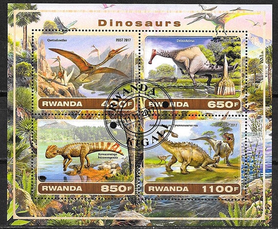 Руанда 2017 год. Динозавры, 1 гашеный блок