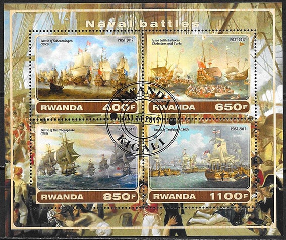 Руанда 2017 год. Корабельные бои, 1 гашеный блок