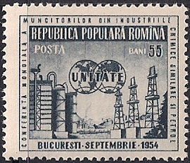 Румыния 1854 год. Международный Конгресс работников нефтехимической промышленности. 1 марка с наклейкой