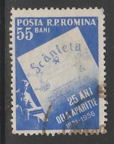 Румыния 1956 год. 25 лет коммунистической газете "Скантейя". 1 марка (гашёная)