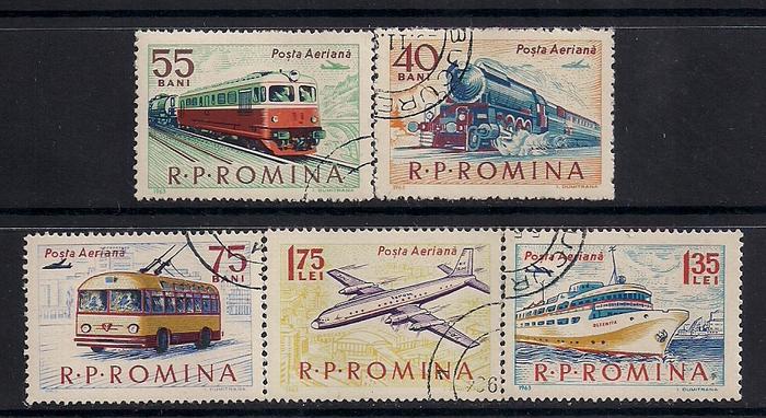 Румыния 1963 год. Транспорт. 5 гашеных марок