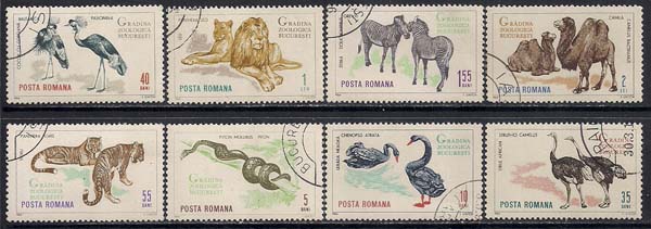 Румыния 1964 год. Дикая фауна. Львы, птицы. 8 гашеных марок