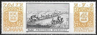 Румыния 1967 год. День почтовой марки, конные повозки, литография, 1 марка