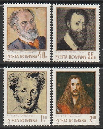 Румыния 1971 год. Автопортреты, 4 марки (наклейка)
