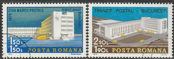 Румыния 1975 год. День почтовой марки. Почтовое отделение Бухареста. 2 гашёные марки