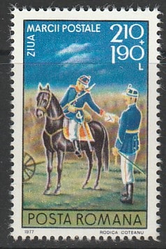 Румыния 1977 год. День почтовой марки. Почтальон получает письмо, 1 марка (наклейка) (2/2)