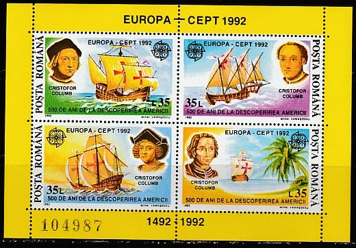 Румыния 1992 год. 500 лет открытию Америки, блок
